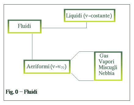 In questo primo paragrafo esplicheremo quelle che sono le basi della fluidodinamica, partendo appunto dalla definizione di tale disciplina. La fluidodinamica è la scienza che studia il movimento dei fluidi, sostanze le quali molecole sono talmente poco legate che esse tendono a scivolare le une sulle altre, adattandosi perciò alle dimensioni del contenitore in cui sono. Partiamo quindi con una classificazione sufficientemente rigorosa di quello che secondo noi possono essere considerati i fluidi (fig.0).