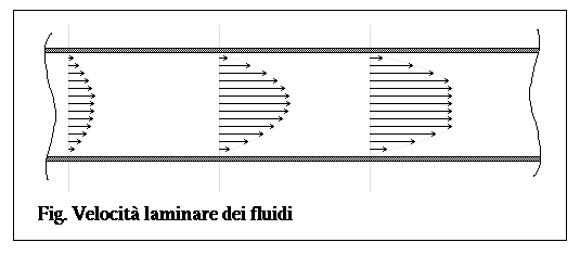 La diversa geometria della conduttura può essere infatti causa di falici turbolenze, soprattutto se sono presenti scabrezze od imperfezioni dei tubi. Come si era precedentemente analizzato, anche per le tubature è importanti la viscosità del fluido, infatti si può notare come siano diversi i profili di velocità del fluido laminare, più lenti in prossimità dei bordi e più veloci sull'asse del condotto (fig.10) (assumiamo il tubo perfettamente cilindrico).
