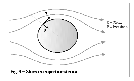 Una sfera ferma in un fluido in movimento è soggetto a tale forza che tende a portarla con se. Tale forza è la scomposizione attraverso la normale passante per il centro geometrico della sfera, lo sforzo totale è la somma vettoriale di ogni contributo; tale sforzo è nullo nei due punti equatoriali mentre appare massimo nei punti sulla perpendicolare alla sfera (fig.4).