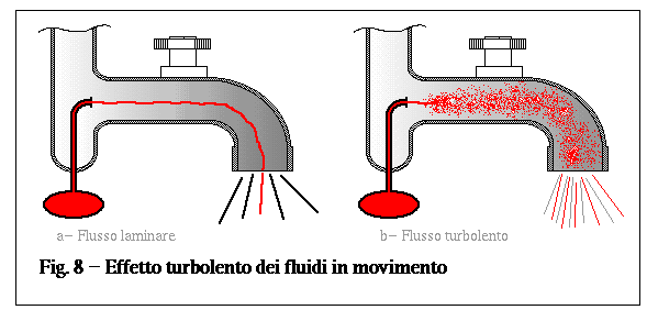Alla base dello studio del moto dei fluidi c'è l'esperienza di Reynolds. Egli dimostrò come fosse il comportamento di un fluido alle diverse velocità dello stesso, cioè egli studiò per primo il comportamento turbolento del fluido (fig.8).
