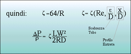 Importante è infine il parametro di perdita calcolato come la differenza di pressione del sistema fratto la densità del fluido che dentro vi scorre. Abbiamo: