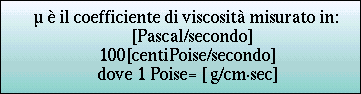Ricordiamo che µ è il coefficiente di viscosità, esso è dipendente dalle condizioni del sistema in luogo soprattutto della temperatura. Nel Sistema internazionale le unità di misura sono: