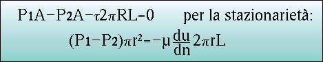 Poiseuille studiò quelle che chiamiamo le perdite di carico, cioè quei fenomeni dipendenti dalla geometria del sistema, scabrezza dei tubi, temperatura e così via, che impediscono che resti invariata la pressione di un fluido nelle stesse ipotesi del caso ideale (v. sopra). Calcoliamo ora la differenza di pressione ingresso-uscita con il bilancio delle forze: