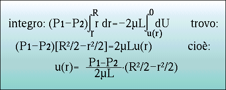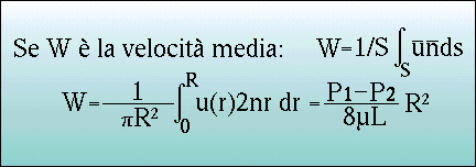 Si è quindi risaliti al profilo della velocità di cui si parlava prima. Calcoliamo ora la velocità media del fluido, integrando ancora, questa volta sul raggio del tubo come indicato in figura (fig.12).