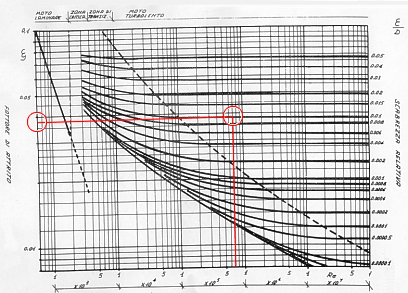 si ricava un fattore di attrito x pari a 0.0385.