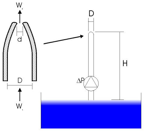 Prima di tutto è importante capire secondo quale principio fisico funziona la sorbona: l’aria immessa dalla base sotto forma di piccole bollicine e l’acqua all’interno del tubo vengono considerate un unico fluido di densità inferiore a quello della sola acqua. Spinto dalla differenza di pressione il fluido misto sale verso la superficie.