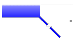 La lunghezza del tubo è L = 7.071. Consideriamo nulle la velocità del pelo libero e la variazione di pressione ambientale fra il pelo e lo sbocco. Anche il lavoro compiuto sul sistema è nullo e perciò l'equazione di Bernoulli si riduce a: